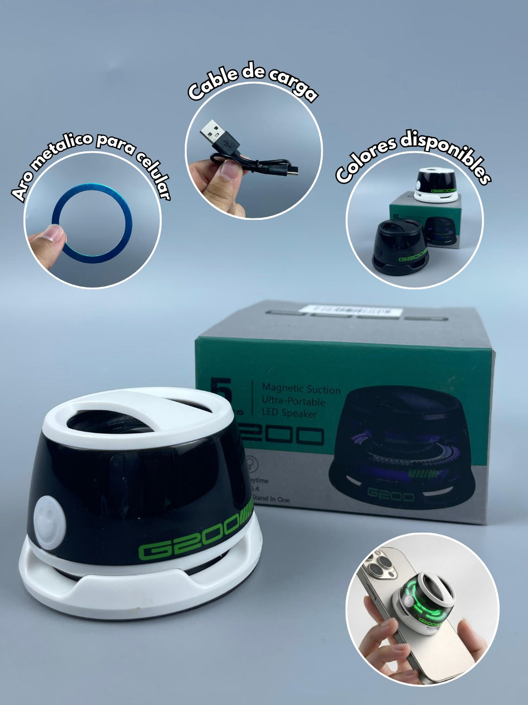 Disfrutá de tu música favorita con este Mini Parlante Magnético G200, compacto, moderno y súper práctico. Gracias a su imán integrado podés colocarlo fácilmente detrás de tu celular o sobre cualquier superficie metálica. Ideal para casa, oficina o salidas con amigos.