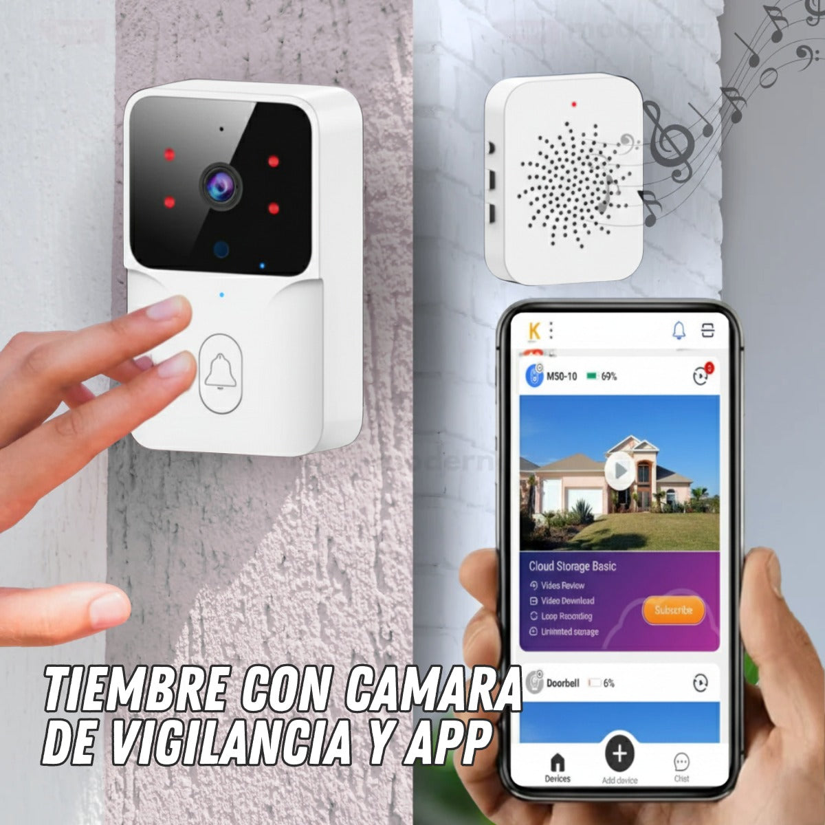 Funciona con la aplicación KEMENT, enviando una notificación inmediata cada vez que alguien presiona el timbre.